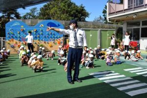 今日は交通安全教室を行ない、