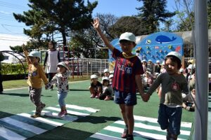 お散歩時にも上手にできている子ども達ですが、