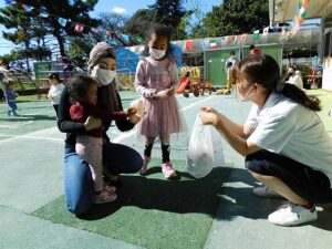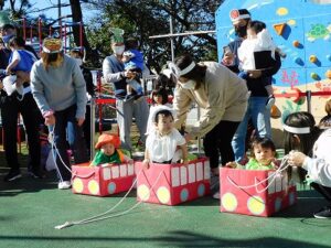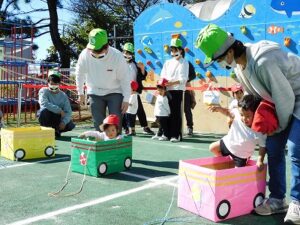 0歳児は、お弁当バスの親子競技に参加しましたよ!
