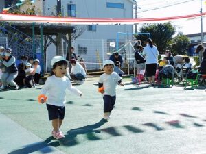 今日は、0歳児、1歳児の運動会を園庭で行ないました☆
