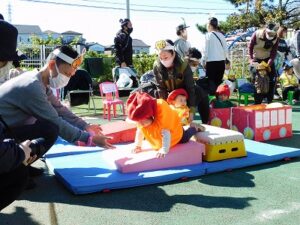 保護者と離れて走ったり、保護者と一緒に踊ったり