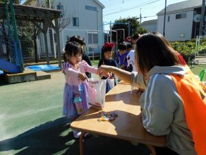 お家から仮装をしてきてくれたり
