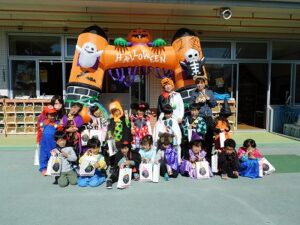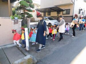 仮装をしてお菓子をもらいに出発です☆