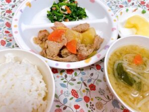 ~今日のお給食~ ・肉じゃが ・ほうれんそうの白和え ・ごはん ・味噌汁(もやし・ほうれんそう・にんじん) ・りんご ~今日のおやつ~ ・りんごジュース ・スイートポテト Share this post Share on FacebookShare on Facebook Share on XShare on X Post navigationPreviousPrevious post:11月17日(水)NextNext post:11月18日関連記事12月15日2025年12月15日12月9日2025年12月9日12月5日2025年12月5日12月4日2025年12月4日11月28日2025年11月28日11月27日2025年11月27日