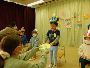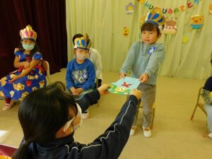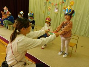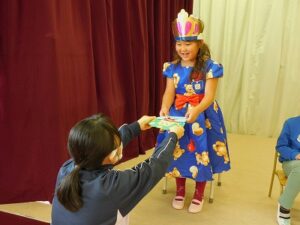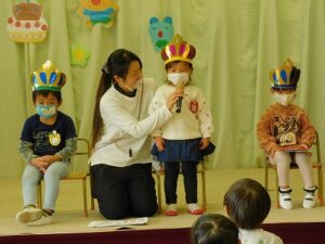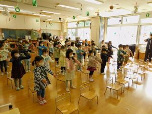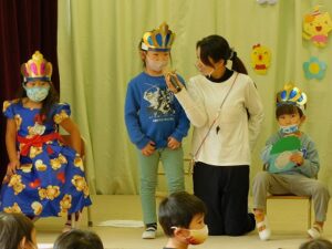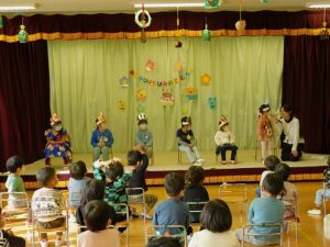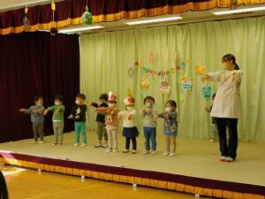 イルカ組のお友達が舞台で見本を踊ってくれ、