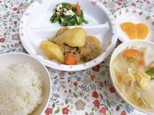 ~今日のお給食~ ・肉じゃが ・ほうれんそうの白和え ・ごはん ・豚汁 ・みかん ~今日のおやつ~ ・豆乳 ・バナナケーキ Share this post Share on FacebookShare on Facebook Share on XShare on X Post navigationPreviousPrevious post:12月2日(木)NextNext post:12月3日(金)関連記事12月4日2025年12月4日11月28日2025年11月28日11月27日2025年11月27日11月26日2025年11月26日11月25日2025年11月25日11月21日2025年11月21日