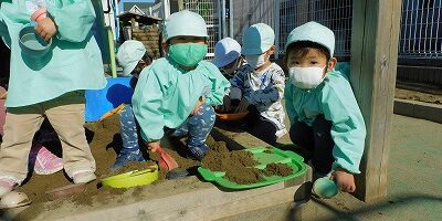 保育部さんは、砂場でおままごとや追いかけっこをして遊んでいました!