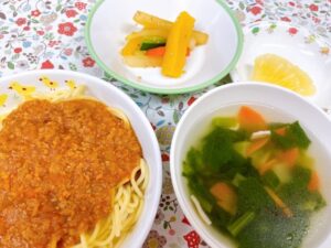 〜今日のお給食〜 ・ミートソーススパゲティ ・カミカミ和え ・コンソメスープ(小松菜・にんじん・ベーコン) ・パイン 〜今日のおやつ〜 ・牛乳 ・ミルクビスケット Share this post Share on FacebookShare on Facebook Share on XShare on X Post navigationPreviousPrevious post:1月12日NextNext post:1月13日(木)関連記事12月9日2025年12月9日12月5日2025年12月5日12月4日2025年12月4日11月28日2025年11月28日11月27日2025年11月27日11月26日2025年11月26日