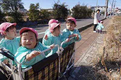 今日ラッコ組のお友達は 辰井川沿いをお散歩しました♪ 自分達で歩いたり、 カートに乗ったりして お散歩です! 途中でトラッ…