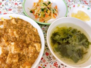 〜今日のお給食〜 ・マーボー豆腐丼 ・もやしの中華風サラダ ・中華スープ(長ネギ・コーン・わかめ) ・パイン 〜今日のおやつ〜 ・牛乳 ・うどん Share this post Share on FacebookShare on Facebook Share on XShare on X Post navigationPreviousPrevious post:1月31日(月)NextNext post:2月1日(火)関連記事12月9日2025年12月9日12月5日2025年12月5日12月4日2025年12月4日11月28日2025年11月28日11月27日2025年11月27日11月26日2025年11月26日