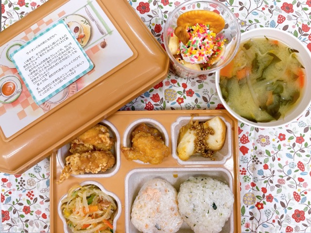 ~今日のお給食~ ・鶏のからあげ ・たれづけからあげ ・カレイのごま照り焼き ・春雨サラダ ・鮭おにぎり、わかめおにぎり ・味噌汁(もやし・わかめ・にんじん) ・パフェ &nbs…