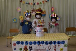 今日は3月のお誕生日会があり、 3人のお友達がお誕生日でした。 「なんの食べ物が好きですか?」 「好きな色は何ですか?」等とお友達の質問に 答えてくれました。 また1つお兄さん、お姉さんになったね! 3人のお友達、おめでとう♪ Share this post Share on FacebookShare on Facebook Share on XShare on X Post navigationPreviousPrevious post:3月17日(木)NextNext post:3月24日(木)関連記事12月12日(金)2025年12月12日12月11日(木)2025年12月11日12月10日(水)2025年12月10日12月9日(火)2025年12月9日12月6日(土)2025年12月6日12月4日(木)2025年12月4日