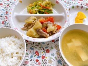 ~今日のお給食~ ・肉じゃが ・春キャベツのおかか和え ・ごはん ・味噌汁(なめこ・豆腐・わかめ) ・モモ ~今日のおやつ~ ・牛乳 ・ジャムサンド Share this post Share on FacebookShare on Facebook Share on XShare on X Post navigationPreviousPrevious post:4月1日(金)NextNext post:4月4日(月)関連記事12月9日2025年12月9日12月5日2025年12月5日12月4日2025年12月4日11月28日2025年11月28日11月27日2025年11月27日11月26日2025年11月26日