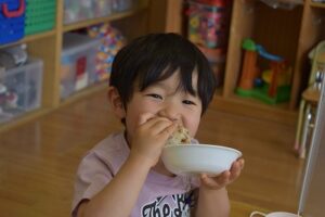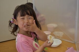 お話が終わった後は、いよいよおにぎりの握り方のお話です。