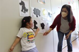 シルエットカードが渡された、すぐに自分のシルエットとイラストの動物を見比べて