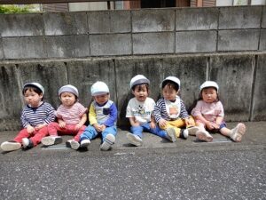 疲れたら壁にペタッと座ってみんなで休憩です。