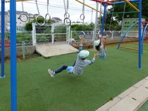 吊り輪の遊具で遊ぶ姿もありました