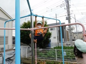 長くぶら下がれるのはどちらかなど自分たちで遊びを考えて取り組んでいました