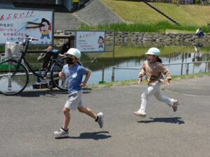 今日の治水緑地ではみんなで、マラソン大会やランニングをして