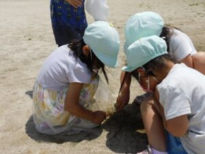 他には、小さな虫を観察する姿もあり、自分たちで様々な遊びを考え取り組む