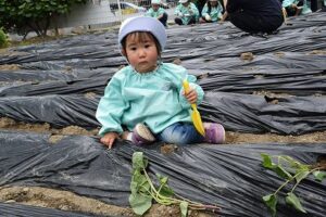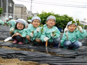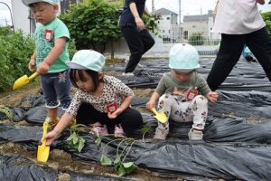 幼稚部さんやイルカ組さんはお友達と楽しく植え付けをおこないました。