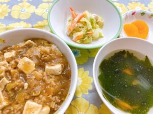 ~今日のお給食~ ・マーボー豆腐丼 ・鶏ささみのカレー風味サラダ ・春雨スープ ・みかん ~今日のおやつ~ ・牛乳 ・ほうれんそうの蒸しパン Share this post Share on FacebookShare on Facebook Share on XShare on X Post navigationPreviousPrevious post:5月17日(火)NextNext post:5月18日(水)関連記事12月12日(金)2025年12月12日12月11日(木)2025年12月11日12月10日(水)2025年12月10日12月9日(火)2025年12月9日12月9日2025年12月9日12月6日(土)2025年12月6日