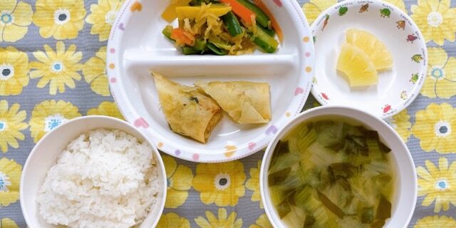 ~今日のお給食~ ・春巻き ・カミカミ和え ・ごはん ・味噌汁(小松菜・たまねぎ・じゃがいも) ・パイン ~今日のおやつ~ ・牛乳 ・バナナきなこ Share this post Share on FacebookShare on Facebook Share on XShare on X Post navigationPreviousPrevious post:5月25日(水)NextNext post:5月26日(木)関連記事12月4日(木)2025年12月4日12月4日2025年12月4日12月1日(月)2025年12月1日発表会のお知らせ NO12025年12月1日写真販売のお知らせ2025年12月1日11月29日(土)2025年11月29日