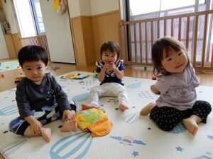みんなでお歌を歌ったり、ぬいぐるみを使ってごっご遊びを先生と楽しんでいました。