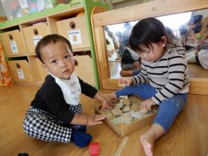 仲よく積み木で遊んでいるお友達もいました。