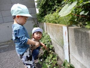 葉っぱやお花を見つけて、じっくり観察したり、