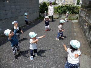 シャボン玉を追いかけたりして遊びました。
