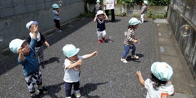 シャボン玉を追いかけたりして遊びました。