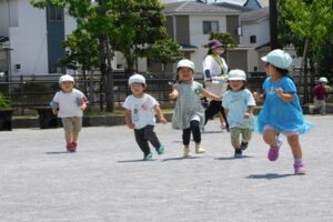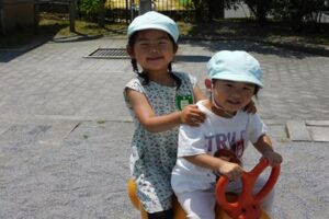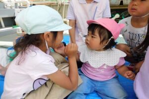 ラッコ組、ライオン組は園庭でふれあい遊びを