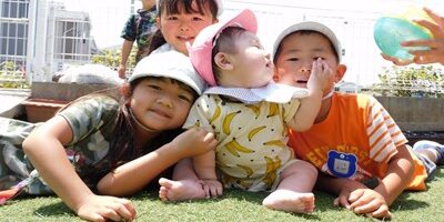 ラッコ組、ライオン組は園庭でふれあい遊びを
