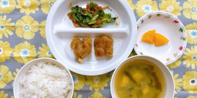 ~今日のお給食~ ・たれづけからあげ ・小松菜サラダ ・ごはん ・味噌汁(豆腐・わかめ・なめこ) ・モモ ~今日のおやつ~ ・牛乳 ・バナナきなこ Share this post Share on FacebookShare on Facebook Share on XShare on X Post navigationPreviousPrevious post:6月11日(土)NextNext post:6月13日(月)関連記事12月4日2025年12月4日11月28日2025年11月28日11月27日2025年11月27日11月26日2025年11月26日11月25日2025年11月25日11月21日2025年11月21日