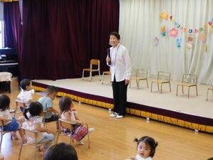 お歌も大きな声で歌い、園長先生のお話もよく聞くことができました。