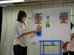 先生達からのプレゼントは「素敵な帽子屋さん」のパネルシアターを行ないました。