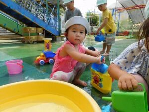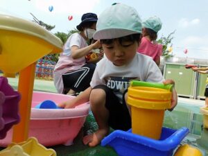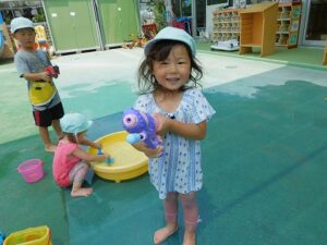 水鉄砲を使って水のかけ合いも楽しみました♪