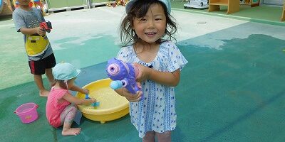 水鉄砲を使って水のかけ合いも楽しみました♪