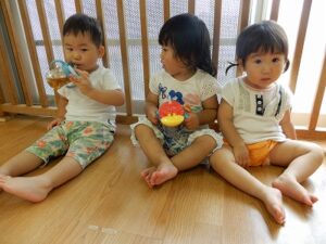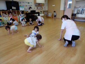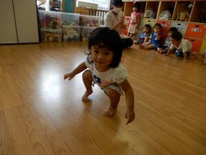 イルカ組のお友達の真似をしてみたら、ペンギン組のお友達も上手にできました。