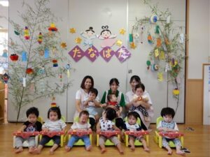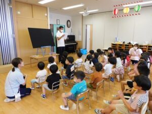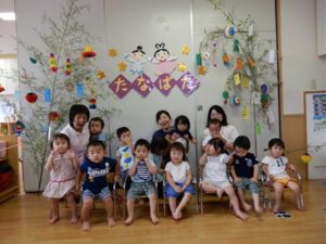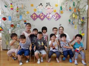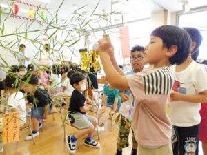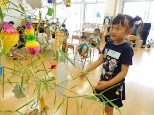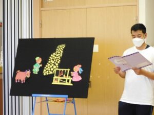 七夕会では、みんなで「たなばた」を歌ったり、パネルシアターを見て