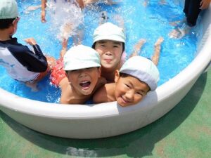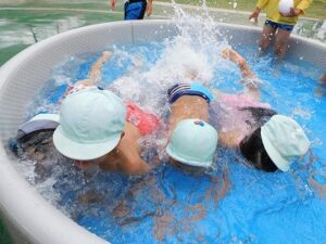 今日のライオン組さんはみんな元気にプール遊びを行ないました。