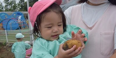 幼稚部のお友達はじゃがいもを掘り、