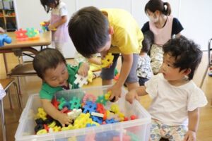 午前中に園周りの散歩をした後、お部屋で一緒に遊び交流を図っていきました