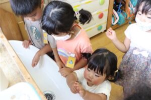 水道の水も気になり、お兄さんお姉さんがいつも手を洗っているところに