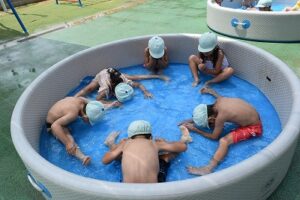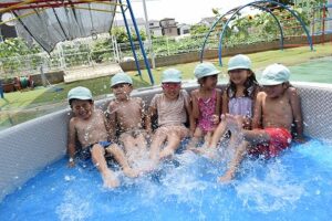 今日はライオン組さんは、午前中はプール遊びをしました。