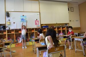 とっても素敵な作品が沢山仕上がったので、一人ずつ前に出て、何を描いたのか、どんなところを工夫して描いたのか発表してもらいました。