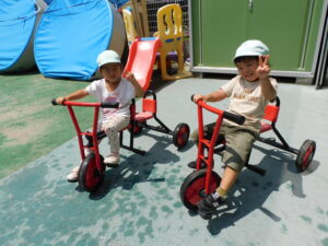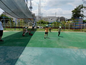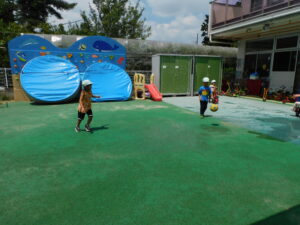 今日は、午前中、園庭に出て遊びました。