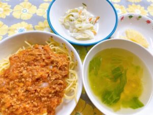 ~今日のお給食~ ・ミートスパゲティ ・コールスローサラダ ・コンソメスープ(たまねぎ・キャベツ・にんじん) ・パイン ~今日のおやつ~ ・牛乳 ・マシュマロコーンフレーク Share this post Share on FacebookShare on Facebook Share on XShare on X Post navigationPreviousPrevious post:8月1日(月)NextNext post:8月2日(火)関連記事12月9日2025年12月9日12月5日2025年12月5日12月4日2025年12月4日11月28日2025年11月28日11月27日2025年11月27日11月26日2025年11月26日