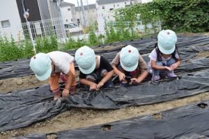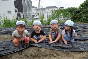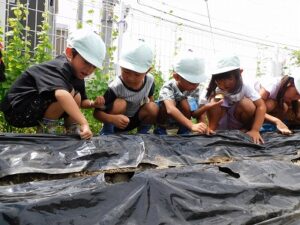 ラッコ組のお友達は小さな種を指で触ってみたり、